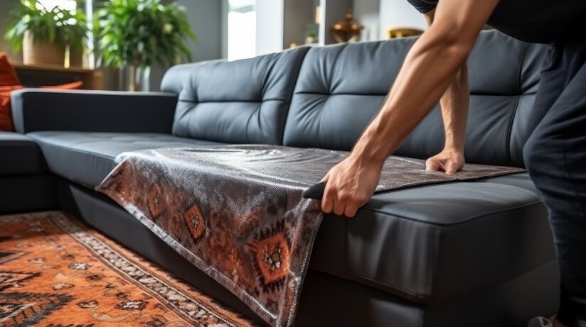 Решить проблему можно используя обычный плед. Для этого необходимо отправиться в ближайший к дому текстильный магазин, где на свой вкус и цвет вы сможете подобрать нужную ткань, чтобы застелить диван.