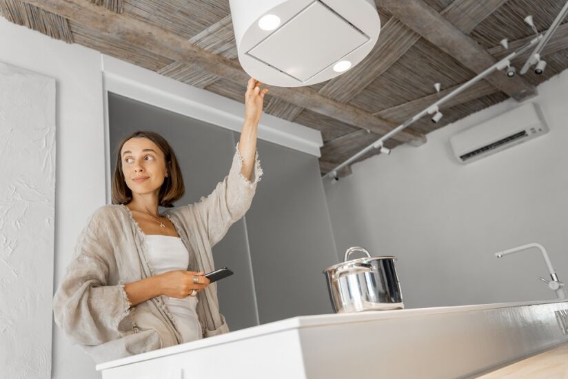 Благодаря данным устройствам, воздух на кухне принудительно очищается в короткие сроки. Если же их включить в самом начале процесса готовки, у паров и копоти просто не остается шанса на распространение по всему помещению.