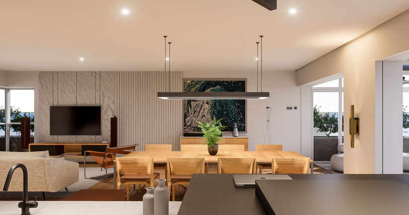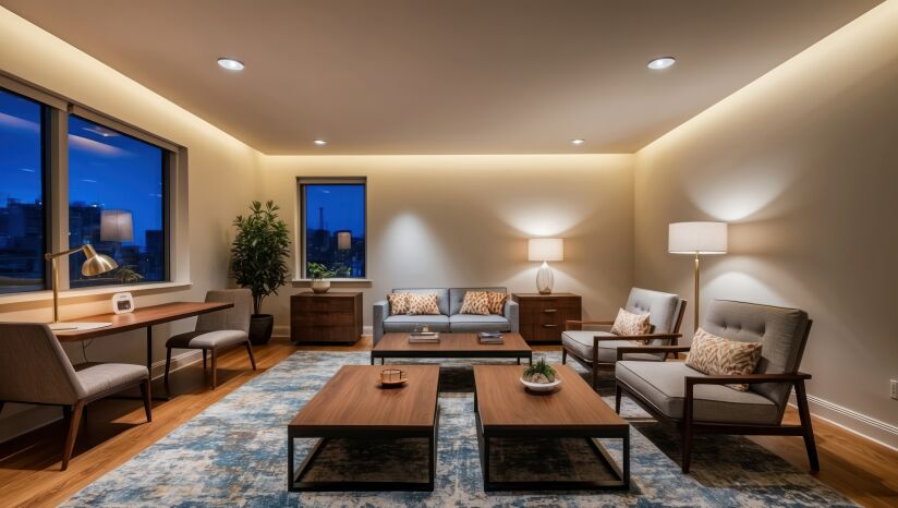 Мы думаем, никому не надо доказывать, какую роль в интерьере играет освещение. Как оно способно преобразить обстановку. Так вот, и здесь тоже действует «правило трёх». Оно выражается в трёх уровнях освещения: верхнем, или общем, среднем, или локальном и акцентном или декоративном.