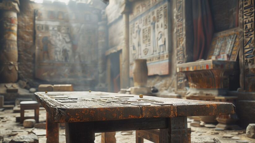 Изучая фрагменты мебели, полученные в результате раскопок гробниц фараонов, в культовых и храмовых сооружениях видно, что в ее изготовлении в основном использовалась древесина ценных пород дерева, камень, слоновая кость. Для придания мебели изысканности ее украшали резьбой, ценными металлами, драгоценными камнями, драпировали шелком, порчей, бархатом. Для вельмож и знати мебель была признаком богатства, высокого статуса.