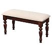Банкетка выполнена из качественных материалов и имеет прочный каркас. Она также может быть изготовлена как в светлом (белый полупрозрачный лак), так и темном (орех темный) цвете, что позволяет подобрать ее под любой интерьер.