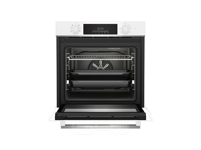 Белый духовой шкаф с LED дисплеем, поворотными переключателями и 8 режимами готовки, в числе которых гриль, разморозка и 3D приготовление, позволяющее готовить несколько блюд одновременно. Духовка имеет класс энергопотребления А и большой объем 72 л, занимая всего лишь 56 сантиметров в ширину. Благодаря съемной внутренней поверхности дверцы и каталитической задней стенке за духовым шкафом легко ужаживать и поддерживать его в идеальном состоянии без лишних усилий. В комплекте: стандартный противень, глубокий противень и решетка.