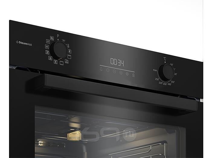 Встраиваемый духовой шкаф черного цвета с цифровым LED дисплеем, сенсорными клавишами, утапливаемыми переключателями и галогеновой подсветкой. Имеет стандартную ширину 6Нет см. Духовка оснащена 12 режимами приготовления, в том числе функцией Booster — она поможет быстро разогреть блюдо к приходу гостей без необходимости ждать, пока духовой шкаф нагреется. Позволяет готовить несколько блюд одновременно за счет 3D-выпекания, равномерно распределяющего нагрев по всему объему рабочей камеры. Дверца духовки оснащена двойным стеклом, которое не позволит случайно обжечься, а также технологией SoftClosе для ее плавного и аккуратного закрытия. При необходимости дверцу можно снять, чтобы быстро и удобно помыть ее отдельно от духового шкафа. Чистку духовки значительно упрощает и каталитическая задняя стенка, расщепляющая жир прямо во время приготовления еды. Оснащена телескопическими направляющими, благодаря которым блюда удобно ставить и доставать, минимизируя риск контакта с горячими поверхностями. В комплекте: стандартный противень, глубокий противень и решетка. Класс энергопотребления духовки — А.Далее