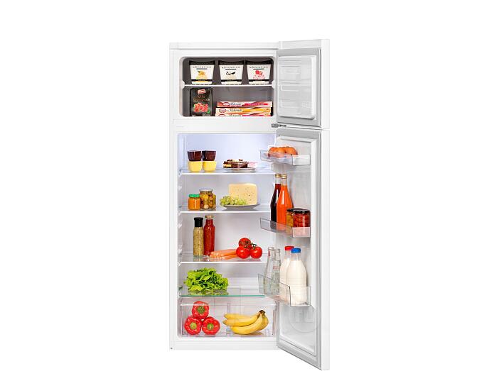 Компактный холодильник для небольшой кухни с верхней морозильной камерой и общим объемом 240 л. Холодильник оснащен статической системой охлаждения и механическим управлением. Уплотнитель дверей холодильника и морозилки имеет антибактериальное покрытие, которое защищает от образования микробов и бактерий. При случайном отключении электричества холодильник сохраняет холод внутри в течение 16 часов.