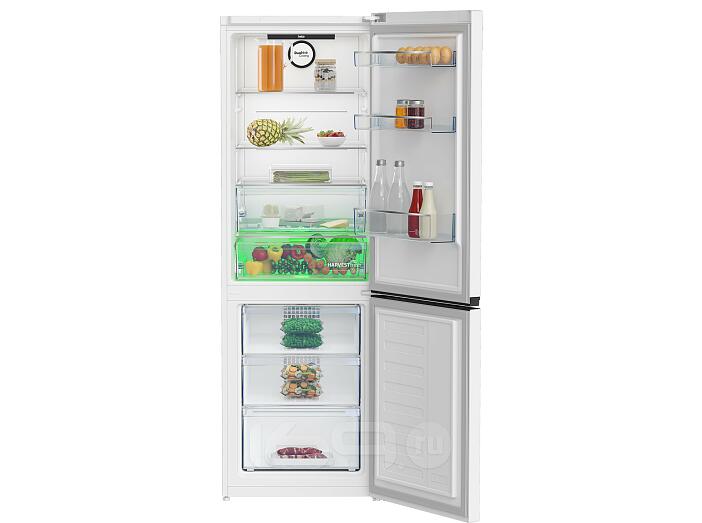 Двухкамерный холодильник высотой 2 метра имеет общий полезный объем 357 л, двухконтурную систему охлаждения No Frost Dual Cooling (Ноу Фрост), энергосберегающие режимы «Отпуск» и Eco Mode. Ящик для фруктов и овощей в холодильнике оснащен технологией 3-х цветов HarvestFresh, которая увеличивает срок хранения свежих фруктов и овощей и поддерживает в них концентрацию витаминов и микроэлементов. Специальный отсек с температурой 0-3 ˚C предназначен для хранения мяса, рыбы и молочных продуктов, дольше сохраняя их свежими. А функция суперзаморозки Quick Freeze в морозильном отделении позволяет быстро заморозить большой объем свежих продуктов.
