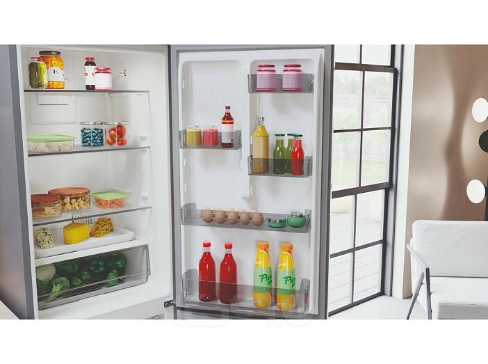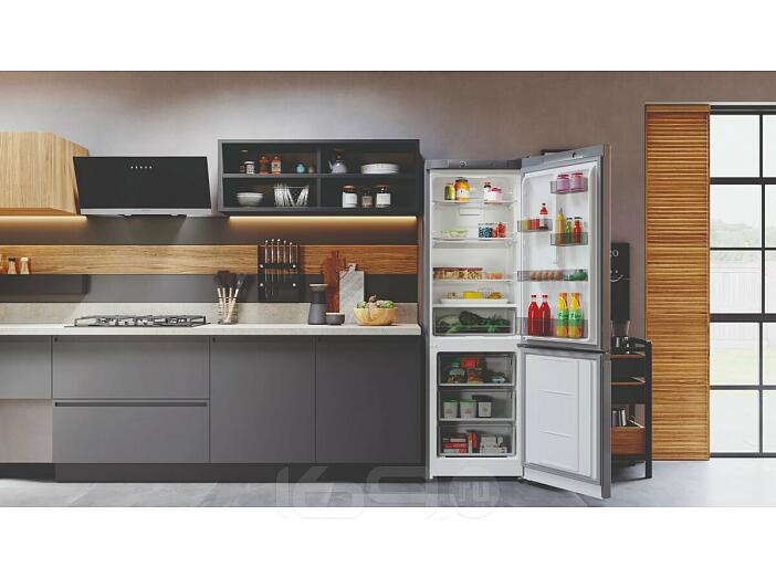 Двухкамерный холодильник с нижней морозильной камерой Hotpoint HT 4180 S в ярком серебристом корпусе высотой 185 см — отличный выбор для современной кухни. Его лаконичный дизайн хорошо сочетается с другой бытовой техникой, а оптимальные габариты и эргономичные перенавешиваемые дверцы позволят вписать его в любую планировку.За профессиональную заботу о свежести продуктов без лишних хлопот в холодильнике Hotpoint HT 4180 S отвечает система No Frost* (Ноу Фрост). А чтобы вы могли легко разместить все продукты, мы предусмотрели холодильную камеру объемом 220 литров и морозильную — 78 литров. Hotpoint — ваш личный ассистент на кухне!