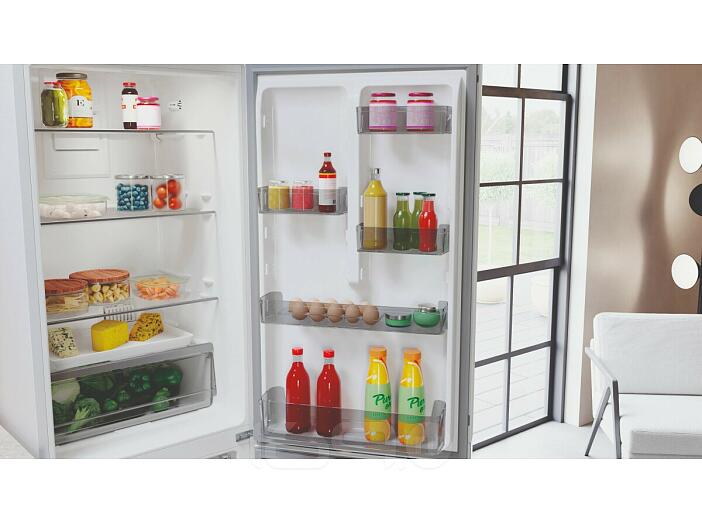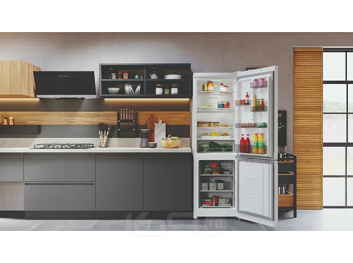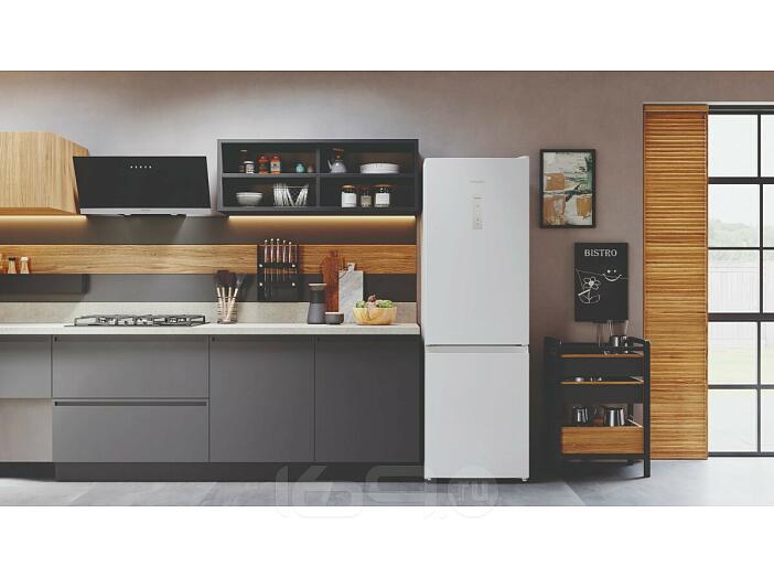 Белый двухкамерный холодильник с нижней морозильной камерой Hotpoint HT 5180 W — это элегантная классическая модель с удобным электронным дисплеем, отражающим все параметры работы. Классический белый цвет и минималистичный дизайн органично дополнят обстановку современной кухни.Холодильник HT 5180 W с технологией Total No Frost* (Тотал Ноу Фрост) не требует регулярной разморозки. Режим быстрого охлаждения незаменим при размещении большого количества новых продуктов для сохранения свежести и вкусовых качеств. Если вы цените эргономичность и интуитивно понятное управление, эта модель может стать вашим личным ассистентом по свежести продуктов.