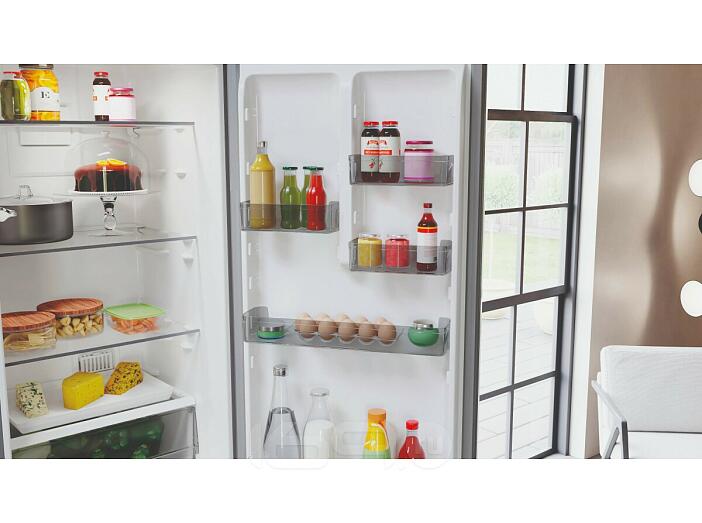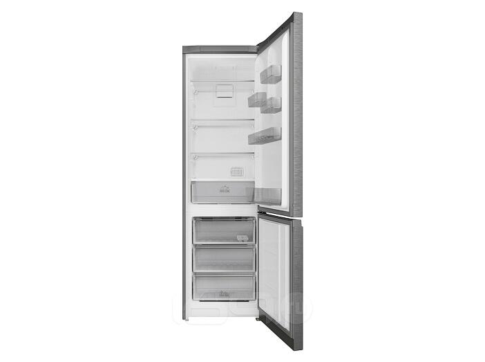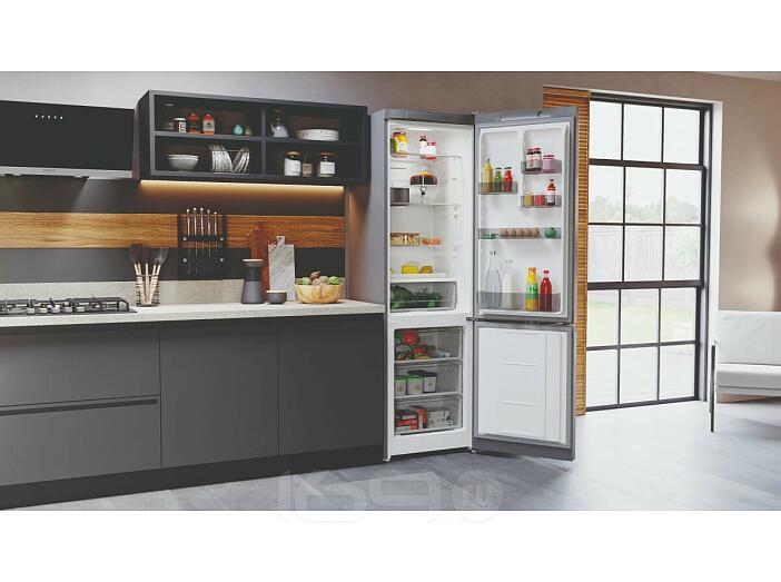 Двухкамерный холодильник с нижней морозильной камерой Hotpoint HT 5200 MX — отличный баланс между вместительностью и притягательным дизайном. Двухметровый корпус в цвете нержавеющей стали органично вписывается в интерьер современной домашней кухни. А полезный объем камер составляет 325 литров — этого вполне достаточно для комфортного размещения продуктов.За качественную работу без наледи отвечает технология Total No Frost* (Тотал Ноу Фрост), благодаря которой холодильник HT 5200 MX не нуждается в регулярном размораживании. А если вам нужно быстро понизить температуру в холодильном отделении для хранения большого объема новых продуктов , функция быстрого охлаждения без труда справится с этой задачей.