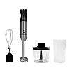 Комплектация:Крышка измельчителя, Моторная часть, Насадка-блендер, Насадка-венчик, Нож для измельчения продуктов, Переходник для насадки-венчика, Чаша для измельчения, Чаша для смешивания