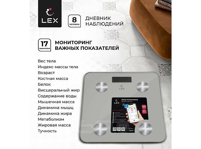 Умные напольные весы LEX LXBS9013 сочетают в себе стильный дизайн и широкий функционал. Весы оборудованы высокочувствительными датчиками, которые мгновенно измеряют 17 основных биометрических параметров тела и вес с точностью до 100 граммов. Динамика всех параметров хранится в приложении в вашем смартфоне, помогая контролировать прогресс поддержания вашего тела в отличной форме. Приложение совместимо с iOS и Android. Для синхронизации со смартфоном реализована технология Bluetooth версия 4.0. Встроенная память позволяет хранить измерения до 8-ми пользователей. Качественное закаленное стекло толщиной 6мм легко в уходе и устойчиво к повреждениям. Весы способны выдерживать нагрузку до 180 кг. Автоматическое включение/выключение экономит заряд батареи. Прорезиненные ножки гарантируют устойчивое расположение на любом типе покрытия. Весы работают от 2 батареек типа АА. Батарейки включены в комплект поставки. Широкая цветовая линейка данной серии весов позволит вам без труда подобрать нужную модель под ваш интерьер.