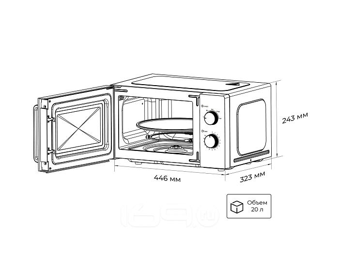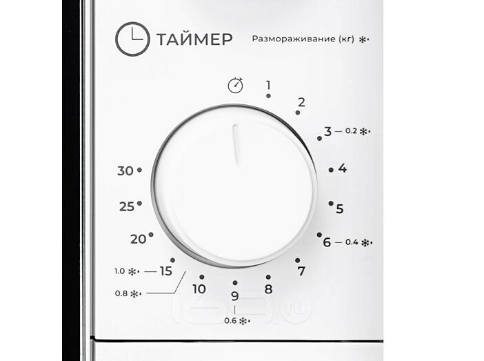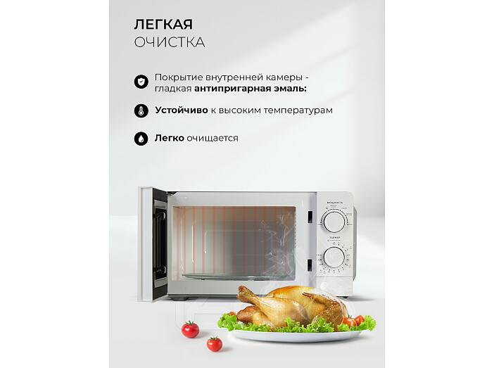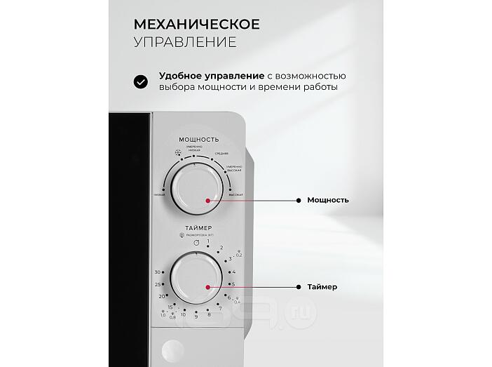 Микроволновая печь оснащена интуитивно понятным механическим управлением и комфортным таймером до 30 минут.