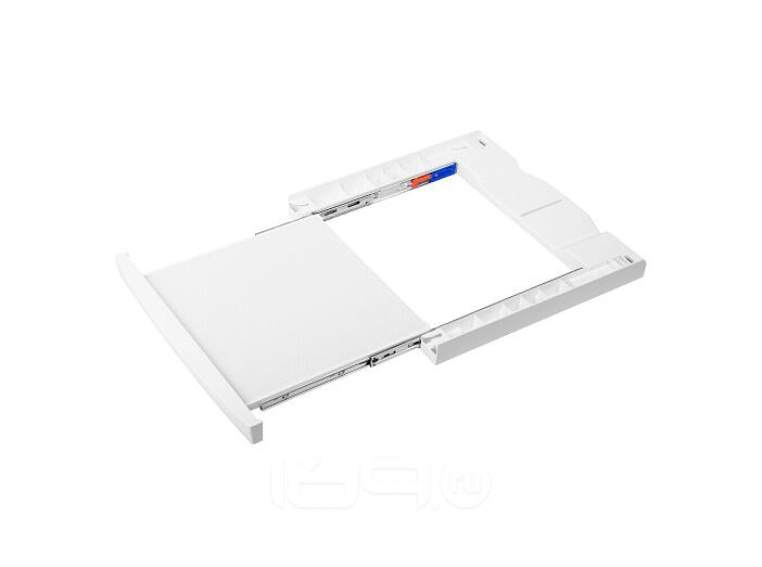 Благодаря выдвижной полке с автоматическими доводчиками больше не придется постоянно наклоняться к корзине с бельем или держать ее на весу при разгрузке сушильной машины, достаточно просто поставить корзину на полку.