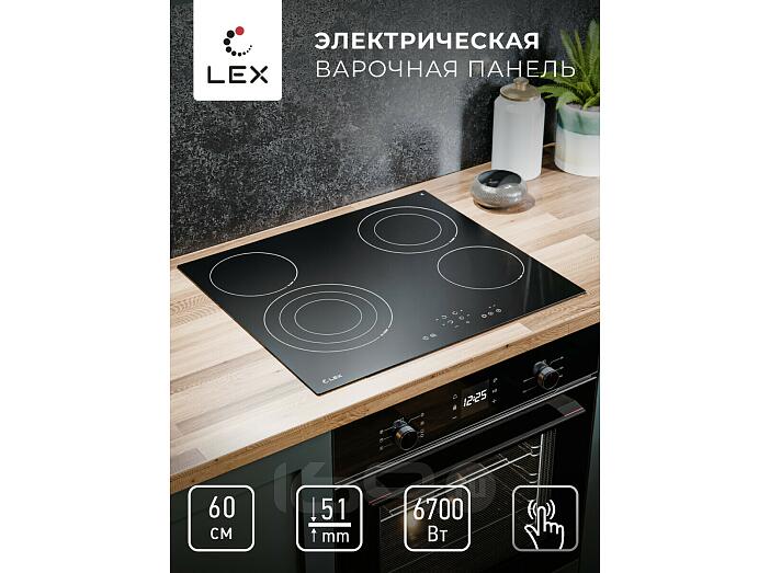 Электрическая варочная панель LEX EVH 642B BL имеет ширину встраивания 600 мм. Традиционный нагревательный элемент HiLight обеспечивает надежную работу и равномерность приготовления блюд. У этой модели четыре конфорки, две из которых с зонами расширения, необходимые для посуды с большим диаметром дна. Стеклокерамическая панель имеет черный цвет, функцию блокировки панели, индикатор остаточного тепла, комбинированную систему защиты от перегрева и выкипания, программируемый таймер автоматического отключения. Модель имеет толщину корпуса 51 мм., что позволяет устанавливать варочную поверхность в тонкие, бюджетные столешницы.