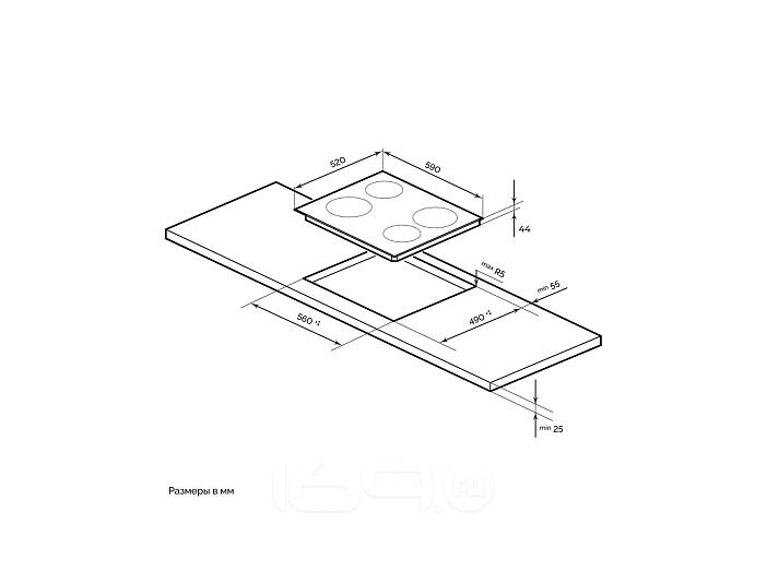 Размер для встраивания, см:560х490