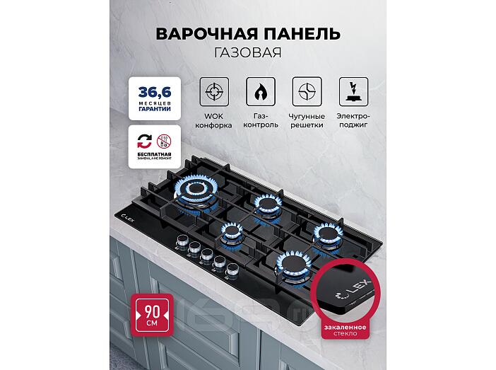 Модель GVG 955 BBL — это газовая варочная поверхность с 5 конфорками различного диаметра и мощности, чугунными решетками и рабочей поверхностью из прочного закаленного стекла. Поверхность из ударопрочного, закаленного стекла — это не только стильно, но и практично. Закаленное стекло не впитывает загрязнения, его легко мыть и с годами ваша поверхность не потеряет свою привлекательность. Надежные чугунные решетки не позволят вашей посуде скользить по своей поверхности за счет шероховатой структуры и прослужат вам долгие годы (чугунные решетки не подвержены деформации при воздействии высоких температур, в отличие от стальных решеток). 5 конфорок различной мощности позволят вам использовать для приготовления посуду различного диаметра, а форма решетки подходит даже для приготовления кофе в турке. Поверхность также оснащена WOK-горелкой. Это горелка увеличенного размера и мощности, снабженная двумя рядами пламени, для более быстрого, мощного и равномерного распределения температуры, что, в свою очередь, подходит для приготовления разнообразных блюд, в том числе и национальных блюд разных стран. За счет равномерного распределения температуры данная конфорка идеально подойдет для томления. Электроподжиг, интегрированный в каждую ручку, позволит вам включить подачу газа и поджечь конфорку движением одной руки. Каждая конфорка снабжена системой газ-контроля, что делает данную поверхность не только стильной и практичной, но еще и максимально безопасной. При затухании огня система газ-контроля автоматически прекратит подачу газа. Варочные поверхности LEX — это современно, практично и безопасно.