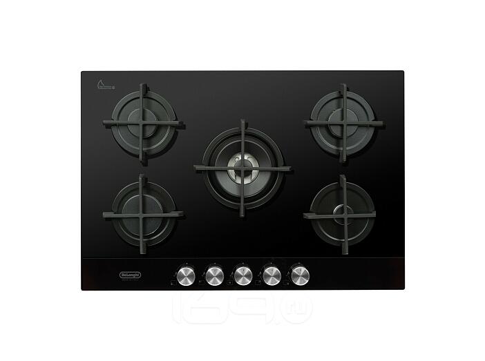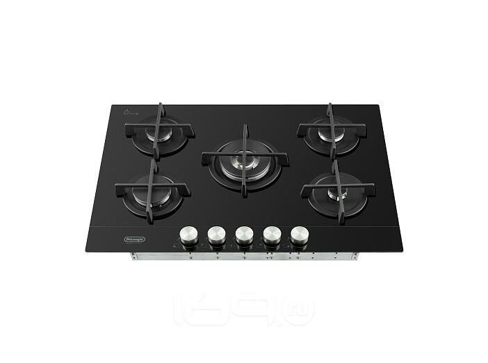 Газовая варочная панель DeLonghi, NSL 575 NC RUS, 75 см, с пятью конфорками, включая одну WOK- конфорку с двойным рядом пламени, одну конфорку повышенной мощности, две стандартные конфорки и одну экономичную конфорку. Варочная панель имеет керамическое стекло повышенной прочности и автоматический розжиг. Управление осуществляется с помощью фронтальной панели. В комплекте поставляются составные чугунные решетки и жиклеры для баллонного газа. Переключатели имеют серебристый цвет, а сама панель выполнена в черном стекле. Размеры варочной панели составляют 52 см в ширину, 75 см в длину и 51 см в высоту,