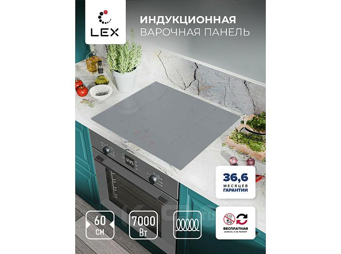 Электрическая индукционная варочная панель LEX EVI 640A GR имеет четыре конфорки и сенсорное управление. Ширина для встраивания 600 мм. Современный индукционный нагревательный элемент демонстрирует высокую скорость нагрева, существенно экономит электроэнергию и сокращает время приготовления блюд. Модель снабжена кнопкой блокировки панели, индикатором остаточного тепла, защитой от перегрева, распознаванием наличия посуды. Наличие функции Boost позволяет ускорить процессы приготовления. Функция StopnGo дает возможность при необходимости одним нажатием приостановить и продолжить работу с сохранением температурных режимов и таймера. Несмотря на общее мнение, что поверхность в индукционной плите не нагревается, это не совсем так. Она нагревается от самой посуды и нужно быть аккуратными. Сразу после снятия кастрюли или сковороды, поверхность горячая, хотя и практически мгновенно остывает. И уже через несколько секунд её можно трогать рукой.