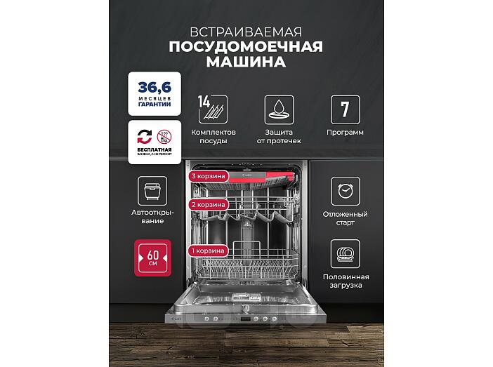 Модель обладает классом энергопотребления А и при загрузке 14 комплектов расходует только 10 литров воды.
