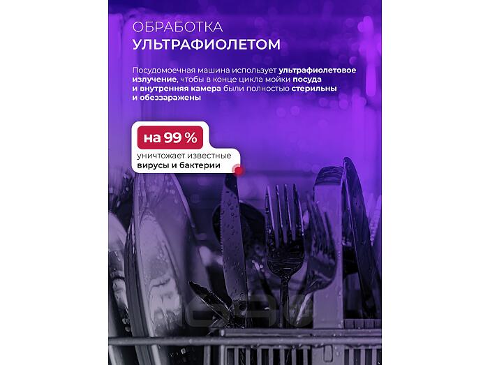 Особенности:Съемная полка для столовых приборов, Проекция времени в пол, Обработка ультрафиолетом, Автооткрытие дверцы