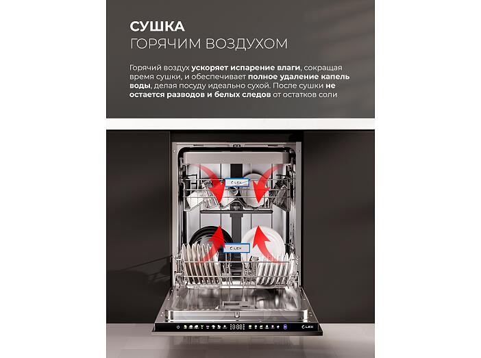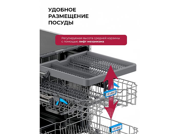 Высокие технологии и стиль для вашего дома!LEX PM 6083А color Lux — это идеальное решение для тех, кто ценит функциональность, удобство и безопасность. Три корзины — две вместительные для посуды и одна корзина для столовых приборов. Полностью сенсорная панель из закаленного стекла с цветными изображениями придает модели современный вид и повышает её надежность.Максимальный комфорт в использованииФункция отложенного старта до 24 часов позволяет запускать посудомоечную машину в любое удобное время. Технология “проекция времени в пол” обеспечивает полный контроль над процессом мойки. Автоматическое открытие дверцы в конце цикла ускоряет сушку и устраняет неприятные запахи.Экономия ресурсов и бесшумная работаLEX PM 6083А color Lux расходует всего 10 литров воды за цикл и соответствует высокому классу энергоэффективности A+++. Уровень шума — всего 49 дБ, что делает её практически незаметной даже в ночное время.Широкий выбор программ для любой посудыВосемь программ, включая быстрый и режим для стекла, позволяют добиться идеальной чистоты даже для деликатных бокалов. Сушка горячим воздухом ускоряем испарение влаги, сокращая время сушки и обеспечивает полное удаление капель воды, делая посуду идеально сухой. После сушки не остается разводов и белых следов от остатков соли.Безопасность на высшем уровнеМногоступенчатая система защиты от протечек Aqua-Stop — обеспечивает максимальный уровень безопасности посудомоечной машины при любых сбоях подачи воды. А обработка ультрафиолетом в конце цикла уничтожает известные вирусы и бактерии на 99%.Основные преимущества:Три корзины — две вместительные для посуды и одна для столовых приборов.Сенсорная цветная панель управления из закаленного стекла.Технология “проекция времени в пол”.Автооткрывание дверцы для удобства.Обработка ультрафиолетом.Отложенный старт на период до 24 часов.Восемь программ, включая быстрый и режим для стекла.Низкий уровень шума — 49 дБ.Экономичное потребление воды — 10 литров за цикл.Класс энергопотребления A+++.Максимальная температура воды — 70 °C.LEX PM 6083А color Lux — это сочетание стиля, надежности и инновационных решений, созданное для вашего комфорта!