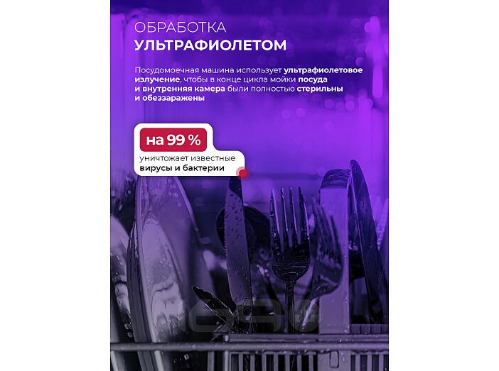 Особенности:Обработка ультрафиолетом, Проекция времени в пол, Выдвижная полка для столовых приборов, Автооткрытие дверцы