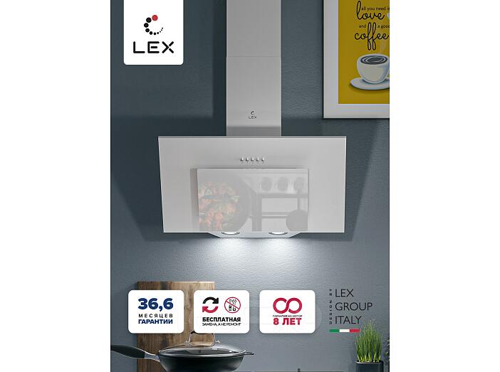 Стиль и комфорт. Наклонная вытяжка, выполненная из белоснежного стекла и окрашенной стали, придает кухне неповторимый вид, не загромождает пространство над варочной поверхностью. LED-освещение обеспечивает хорошую видимость во время приготовления.