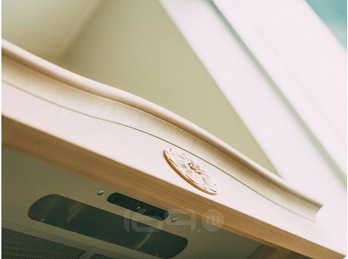 У этой достойной, аккуратной, классической вытяжки есть свои маленькие секреты… Оригинальный купол с небольшим изгибом и слегка зауженной кверху формой придает стройности этой модели. Дополнительная окантовка из нетонированного дерева декорирована элементом в форме цветка, которому вы также можете самостоятельно придать любой цвет и оттенок. Не вытяжка — модель, модель высокой моды, которая станет украшением и центром любой классической кухни в стиле «Рустика»