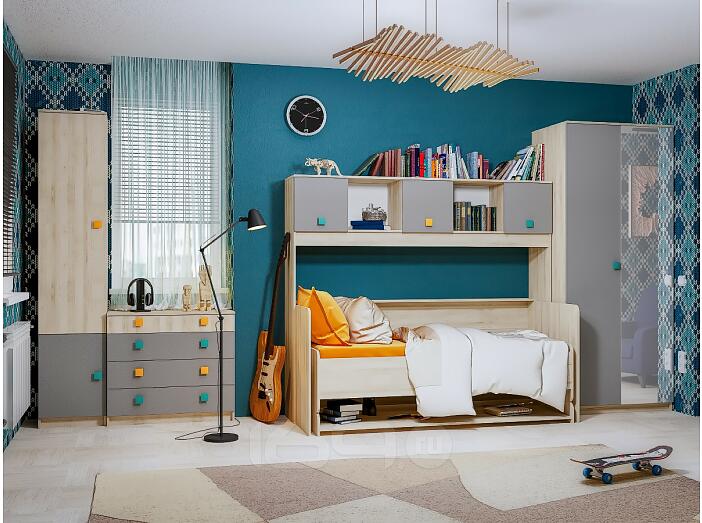 Высота спального места 595 мм; размер столешницы 1810 х 564 мм; высота от столешницы до основания кровати (если разложена кровать) составляет 375 мм, что позволяет оставить на столе лампу, ноутбук, книги и тетради.