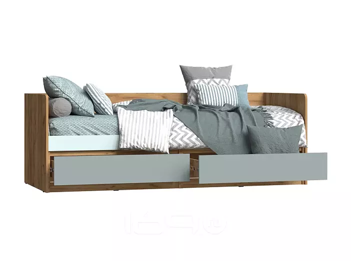 Кровать Челси без обивки мята/сумеречный голубой/дуб крафт без П/М 800x2000, изголовье жесткое