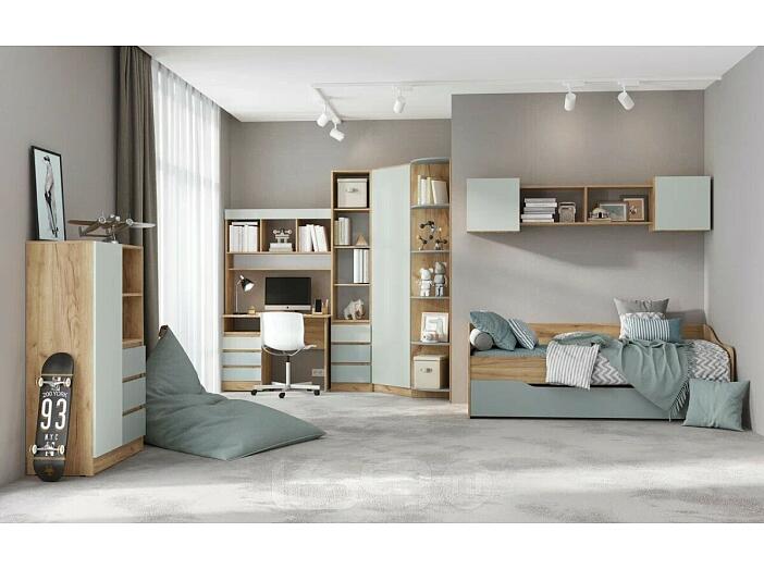 Кровать Челси без обивки дуб крафт/сумеречный голубой без П/М 900x2000, изголовье жесткое