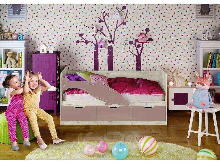 Кровать Дельфин без обивки шарли pink/дуб крафт белый без подъёмного механизма 800x1600, без ортопедического основания, изголовье жесткое