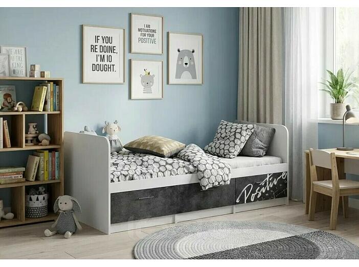 Кровать Вега без обивки бетон темный/белый без П/М 800x2000, изголовье жесткое