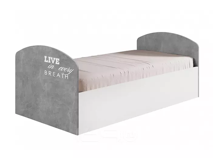 Кровать Юниор без обивки бетон светлый/белый без подъёмного механизма 800x2000, без ортопедического основания, изголовье жесткое