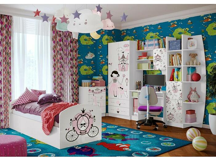 Кровать Юниор без обивки белый/фотопечать/белый без подъёмного механизма 800x2000, без ортопедического основания, изголовье жесткое