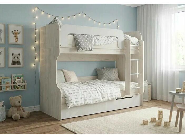 Кровать Юниор без обивки шарли белый/дуб крафт белый без П/М 800x2000, изголовье жесткое