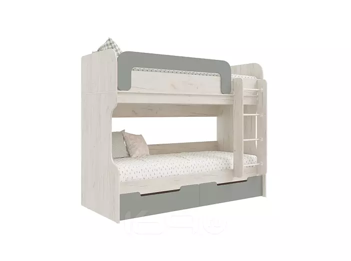 Кровать Юниор без обивки шарли бриз/дуб крафт белый без П/М 800x2000, изголовье жесткое