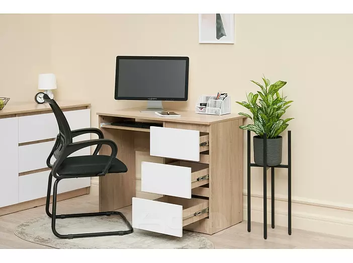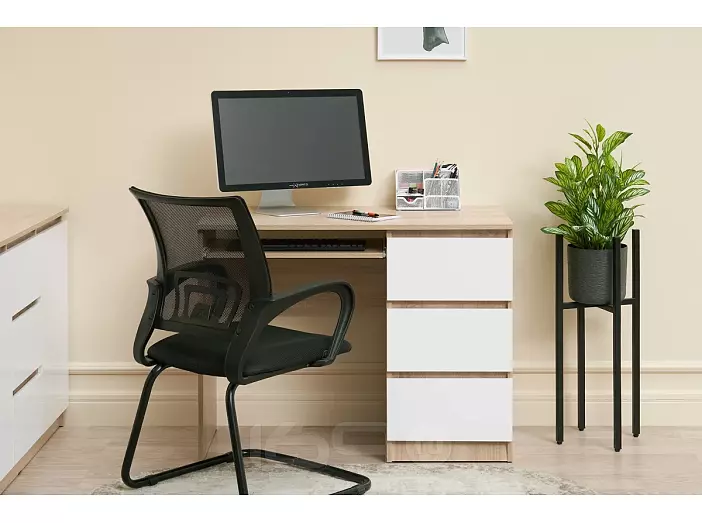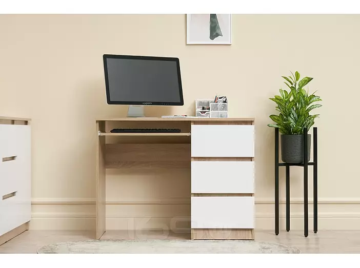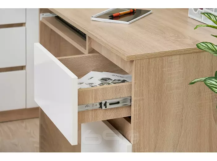 Челси Стол письменный (Ш) (Белый глянец холодный, дуб сонома)