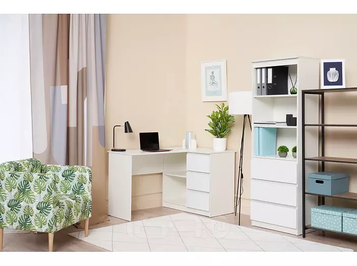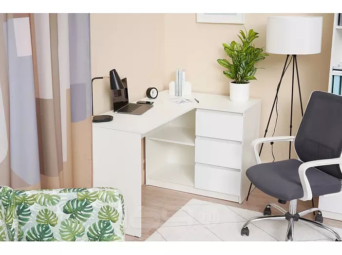 Челси Стол письменный угловой (Ш) (Белый глянец холодный, белый)