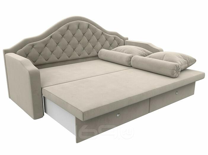 Диван с таким механизмом нужно потянуть за нижнюю часть для выдвижения потайной секции. Дальнейшее выдвижение секции создает уже полноценное спальное место.