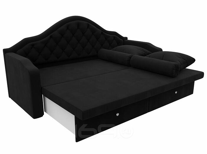 Диван с таким механизмом нужно потянуть за нижнюю часть для выдвижения потайной секции. Дальнейшее выдвижение секции создает уже полноценное спальное место.