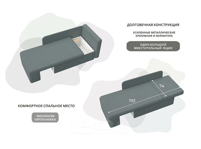 Лаконичные и качественные кушетки со спальным местом для малогабаритных квартир – лучшее решение. Прекрасный вариант –кушетка Лига-097. Дополнительное преимущество - наличие просторного ящика для хранения белья.