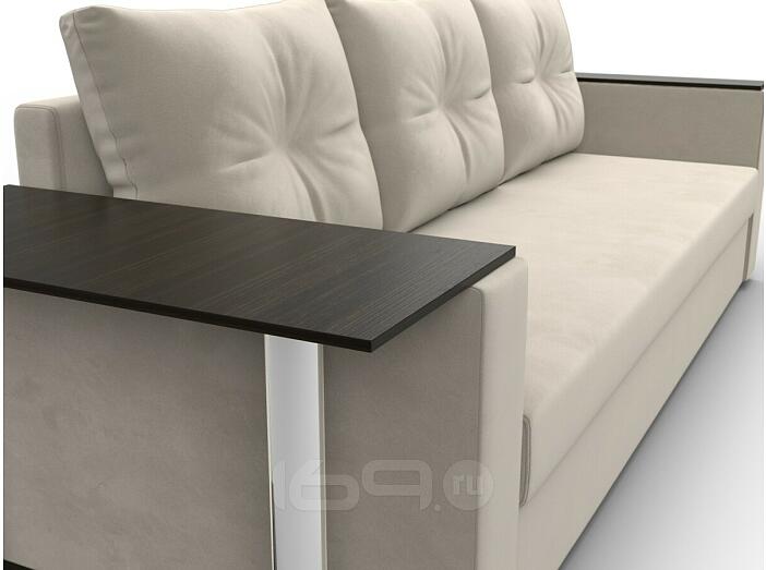 Диван прямой атланта со столом слева микровельвет бежевый еврокнижка