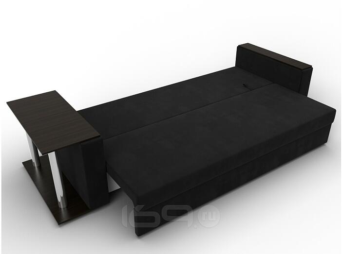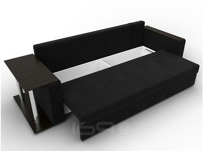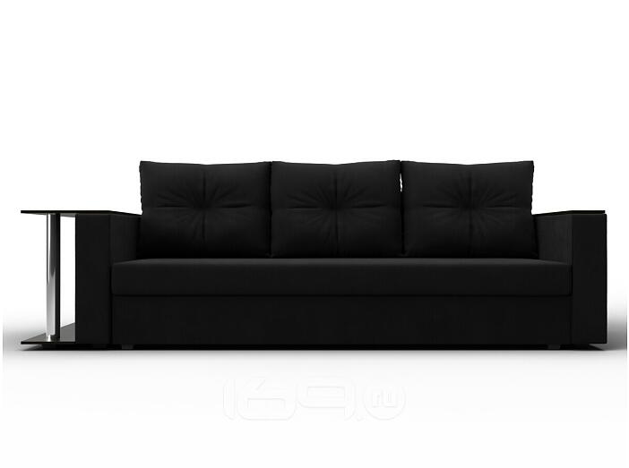 Диван прямой атланта со столом слева микровельвет чёрный еврокнижка