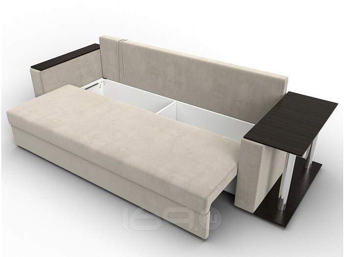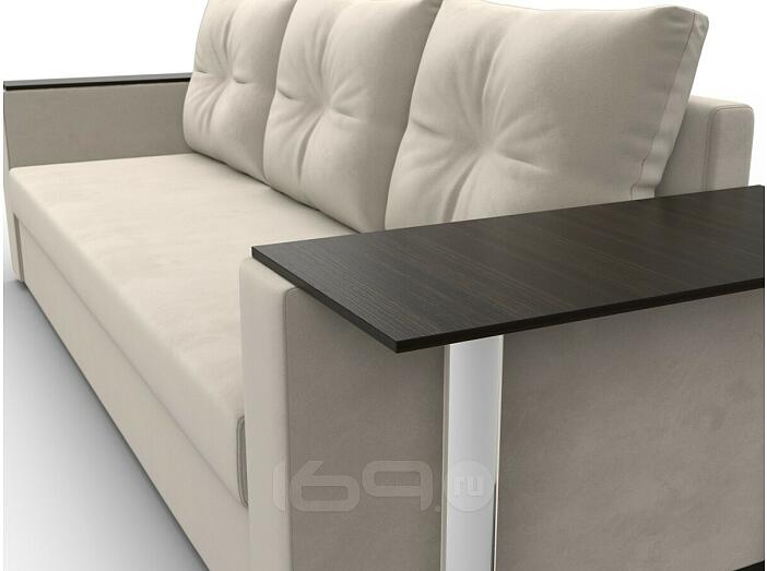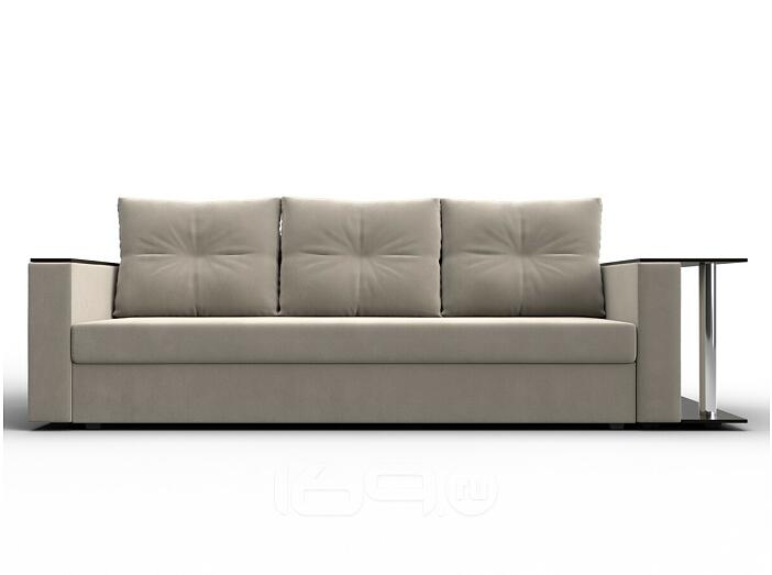 Диван прямой атланта со столом справа микровельвет бежевый еврокнижка