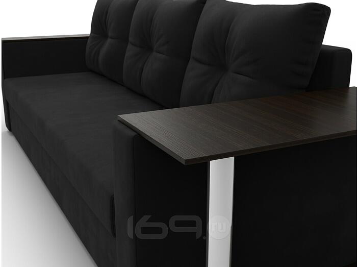 Диван прямой атланта со столом справа микровельвет чёрный еврокнижка