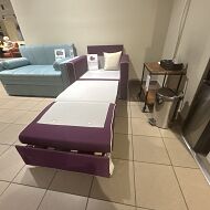 Диван с таким механизмом нужно потянуть за нижнюю часть для выдвижения потайной секции. Дальнейшее выдвижение секции создает уже полноценное спальное место.
