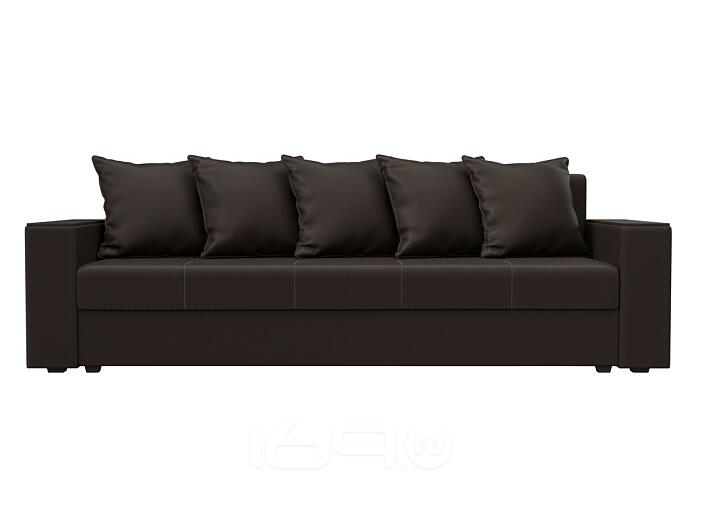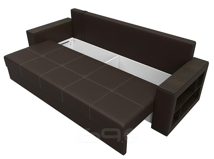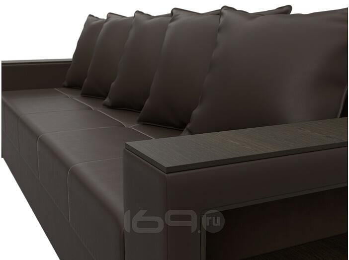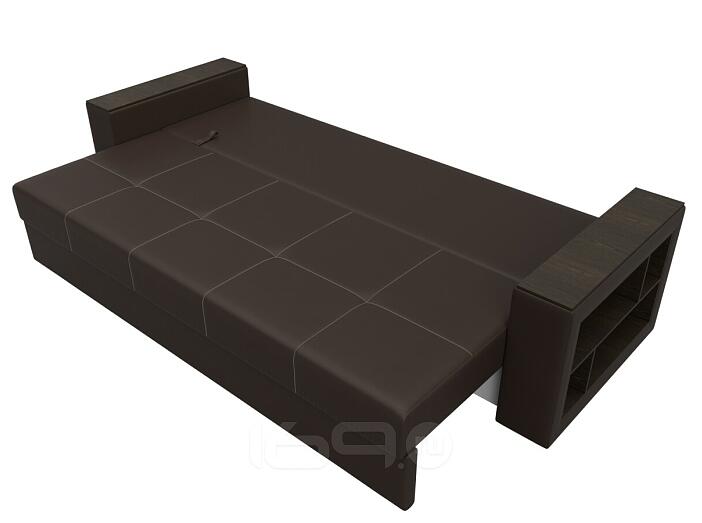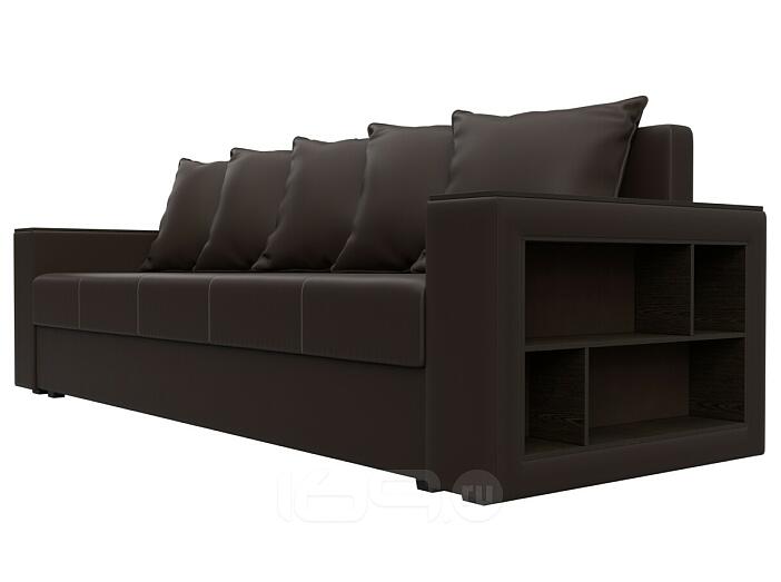 Диван прямой дубай лайт полки справа экокожа коричневый еврокнижка
