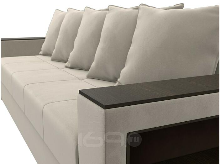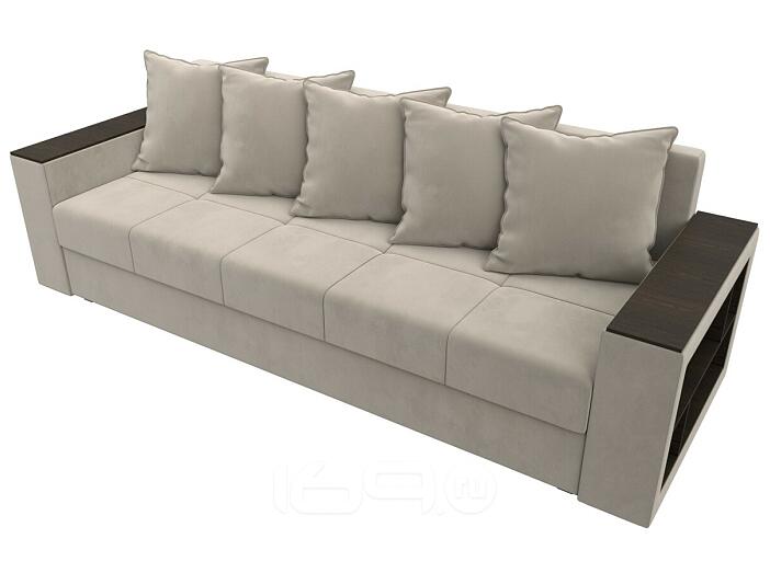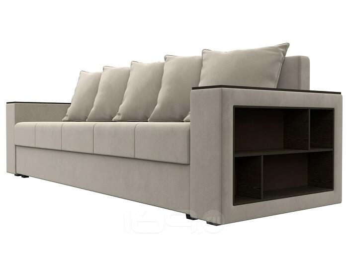 Диван прямой дубай лайт полки справа микровельвет бежевый еврокнижка