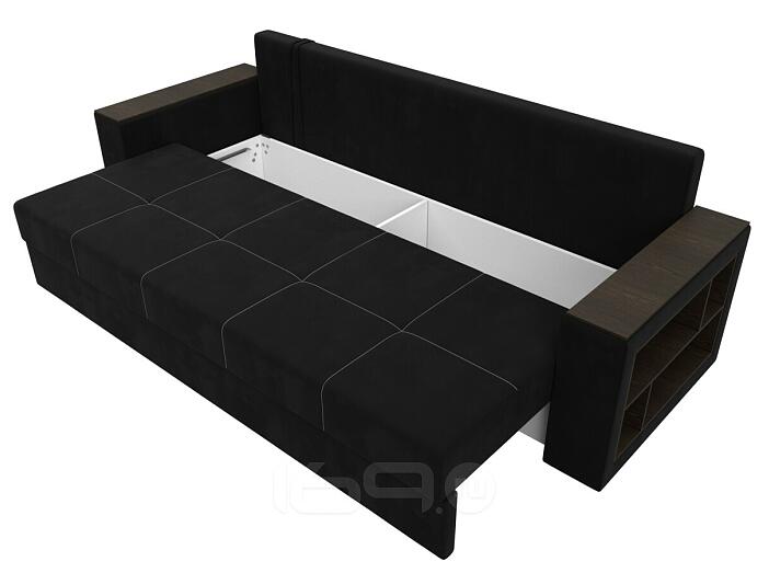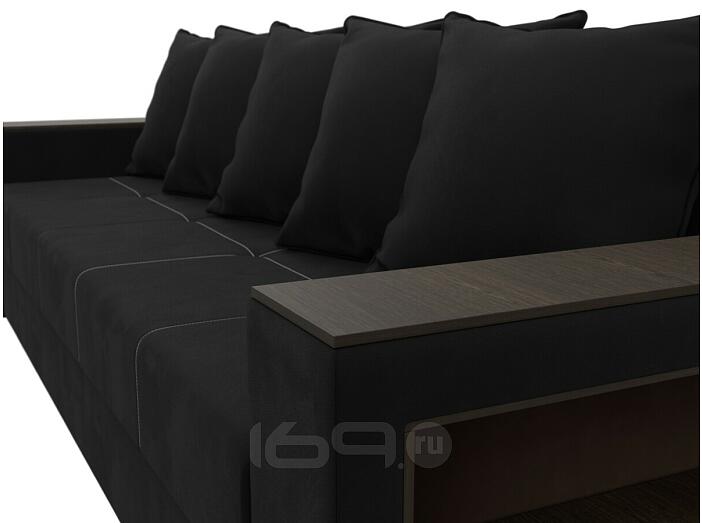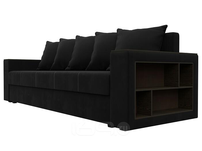 Диван прямой дубай лайт полки справа микровельвет чёрный еврокнижка