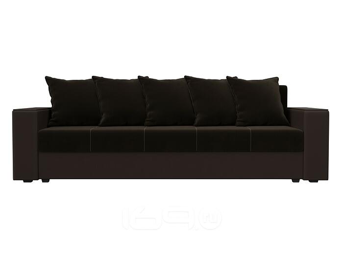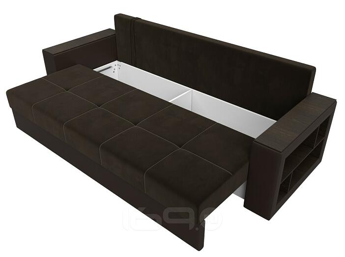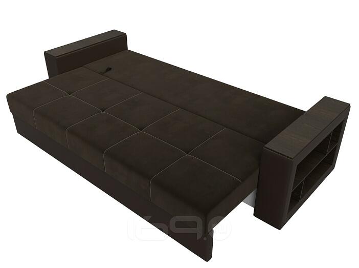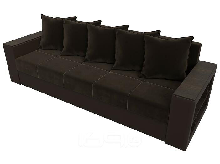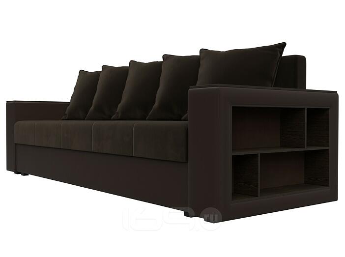 Диван прямой дубай лайт полки справа микровельвет коричневый еврокнижка